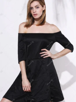 Sexy Half Sleeve Off-The-Shoulder Plus Size Women’s Black Dress