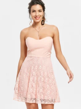 $26.990 out of 5Style: Sexy & Club Material: Lace Silhouette: A-Line Dresses Length: Mini Neckline: Strapless Sleeve Length: Sleeveless Pattern Type: Floral Season: Summer With Belt: No Weight: 0.3640kg Package Contents: 1 x Dress