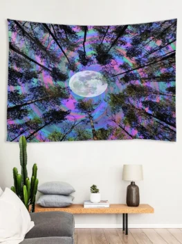 $14.995 out of 5Features: – Made of polyester, easy to clean – Clear and vivid printing – Perfect for indoor or outdoor as tapestry, table cloth, beach throw, picnic blanket, etc. Style: Natural Material: Polyester Feature: Removable,Waterproof Shape/Pattern: Forest,Moon,Tree Weight: 0.2100kg Package Contents: 1 x Tapestry